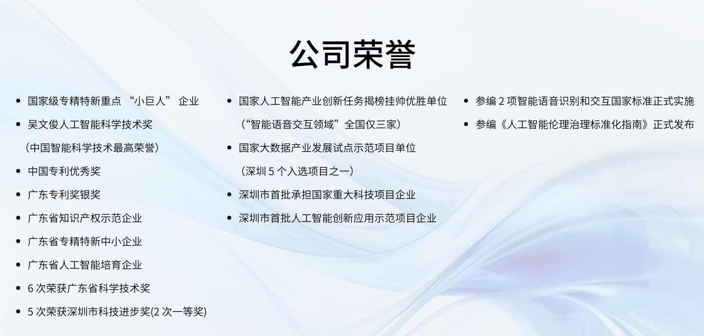 北(běi)科(kē)瑞聲彙聚世界一(yī)流的(de)研發運營團隊,創始團隊來(lái)自(zì)香港科(kē)技(jì)大(dà)學、中國(guó)科(kē)δ技(jì)大(dà)學和(hé)北(běi)京大(dà)學等海(hǎi)內(nèi)外(wài)知(zhī)名院校(xiào)。公司擁有(y$ǒu)300餘項知(zhī)識産權,榮獲國(guó)家(jiā)人(rén)工(gōng)智能(néng)最高(gāo)獎吳文(w&én)俊獎、中國(guó)專利優秀獎、廣東(dōng)專利獎銀(yín)獎、5項廣東(dōng)省科(kē)學技(jì)術(shù)獎和(hé)6項深圳市(shì)科(k♥ē)技(jì)進步獎;建設有(yǒu)省級工(gōng)程技(jì)術(shù)研究中心(2023年(nián)獲評優秀)及市(shì)級重點實驗室、工(gōng)程實驗室等創新載體(tǐ),并承擔多(duō)項國(guó)家(jiā)及省市(shì)級重大(dà)項目。同時(shí),北(běi)科(kē)瑞聲作(zuò)為(wèi)全國(guó)信标委人(rén)工(gōng)智能(néng)分(fēn)委會(huì)發起委員(yuán)單¶位,已參與制(zhì)定智能(néng)語音(yīn)識别和(hé)交互2項國(guó)家(jiā)标準。