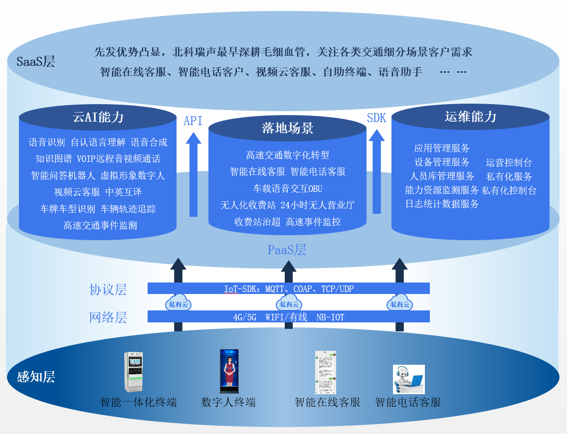 AI語音(yīn)雲及NLP高(gāo)速交通(tōng)智慧大(dà)腦(nǎo),支持互聯網、電(diàn)話(huà)、終端設備多(>duō)渠道(dào)多(duō)終端接入,覆蓋O2O線上(shàng)至線下(xià)全方位服務,結合高(gāo)速交通(tōng)業(yè)務場(chǎng)景及高(g§āo)速視(shì)頻(pín)雲系統,打造從(cóng)感知(zhī)、連接到(dào)高(gāo)速交通(tōng)場(chǎng)景觸達的(de)語音(yīn)賦能(né<ng)鏈條,實現(xiàn)圖文(wén)視(shì)聽(tīng)深度融合的(de)AI高(gāo)速交通(tōng)綜合信息服•務平台,推動智慧高(gāo)速公路(lù)建設縱深化(huà)發展的(de)數(shù)字化(huà)轉型。